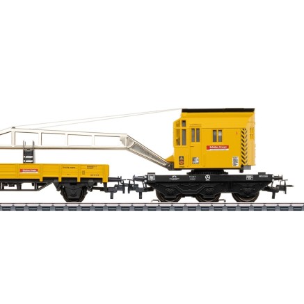 mit dem Kran im Set kommt auch ein passender gedeckter Güterwagen mit leuchtendem Schlusslicht.