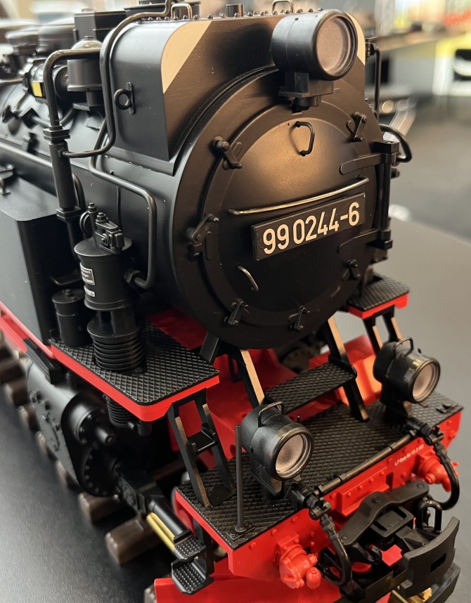 Die Deutsche Reichsbahn der DDR hat sich in den 1970er Jahren entschlossen, die Neubaulokomotiven der Baureihe 99.23-24 aus wirtschaftlichen Gründen auf Ölhauptfeuerung umzubauen. So wurden zwischen 1976 und 1981 alle Maschinen im RAW Görlitz entsprechend umgebaut.Durch die ab 1981 beginnende Ölkrise wurde die Versorgung der Harzer Schmalspurbahn mit Schweröl aber immer schwieriger und vor allem teuer.Daher entschloss man sich schon 1981/82, die Lokomotiven wieder auf Rostfeuerung (Kohle) zurück zubauen.Das Modell wurde entsprechend am Tender geändert und stellt den Betriebszustand der Lok 99 0244-6 um 1976 dar.Das Modell besitzt außerdem weiße Markierungen am Vorwärmer und an den Sonnenblenden der vorderen und hinteren Führerhausfenster. Diese Markierungen sind auf den Transport zum und vom RAW Görlitz zurück zu führen. Die Loks dieser Baureihe sind verhältnismäßig hoch und verladen auf einem Schmalspur-Transportwagen stellen sie eine Lademaßüberschreitung dar. Dieser Umstand machte die weißen Markierungen notwendig. Die Markierungen sind aber meist sehr schnell unter dem Schmutz des Alltagseinsatzes wieder verschwunden.